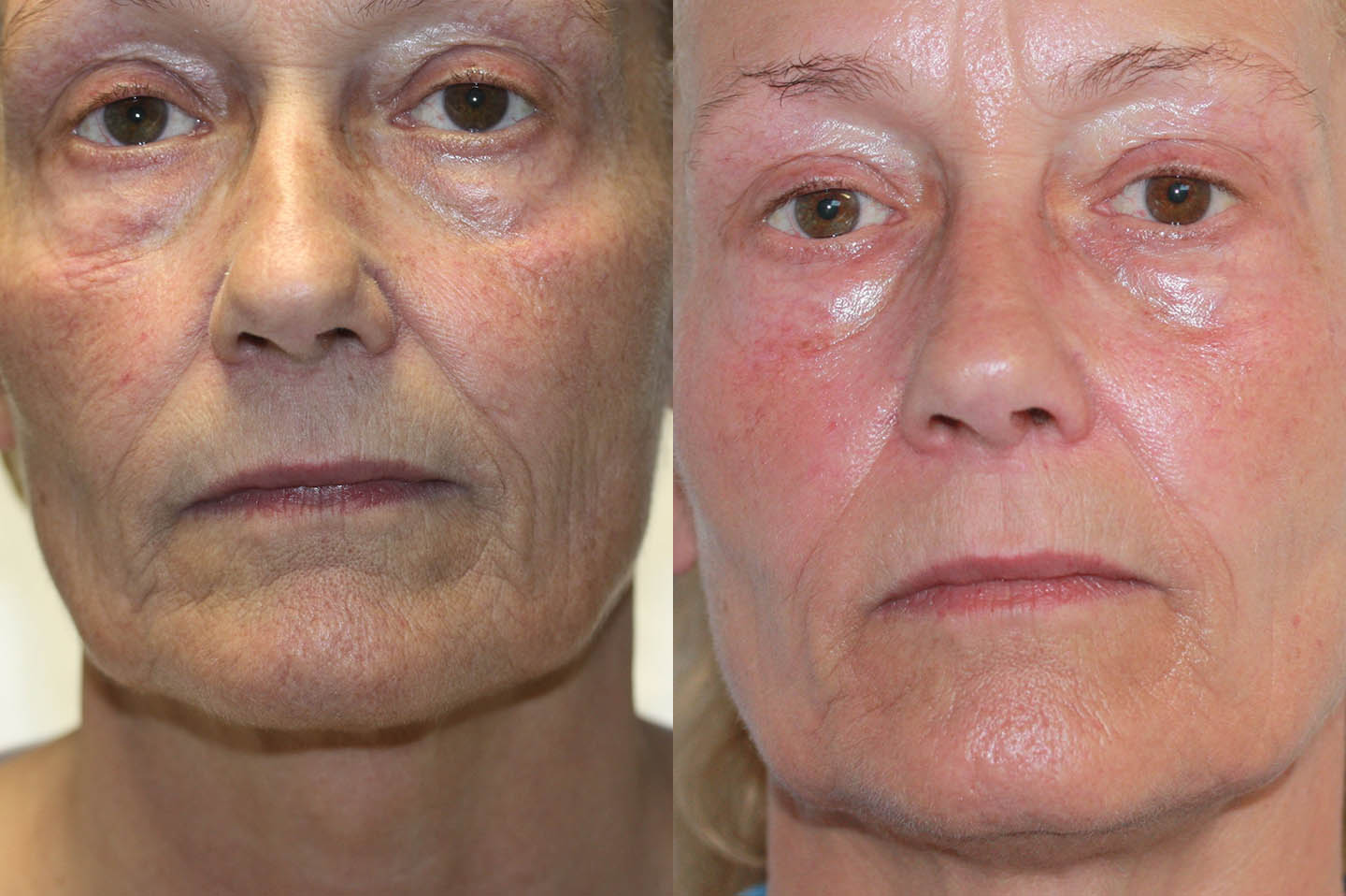 Fractional laserkuur na 4 beh. huidverbetering. Let op de lijntjes wangen, ogen en frisse huidtoon